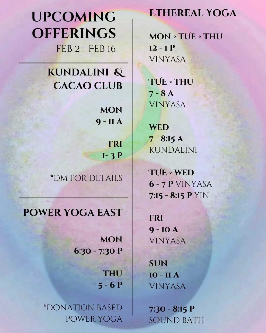 *this space is donation based yoga, recommended donation $20/class. no need to sign up in advance, just show up.